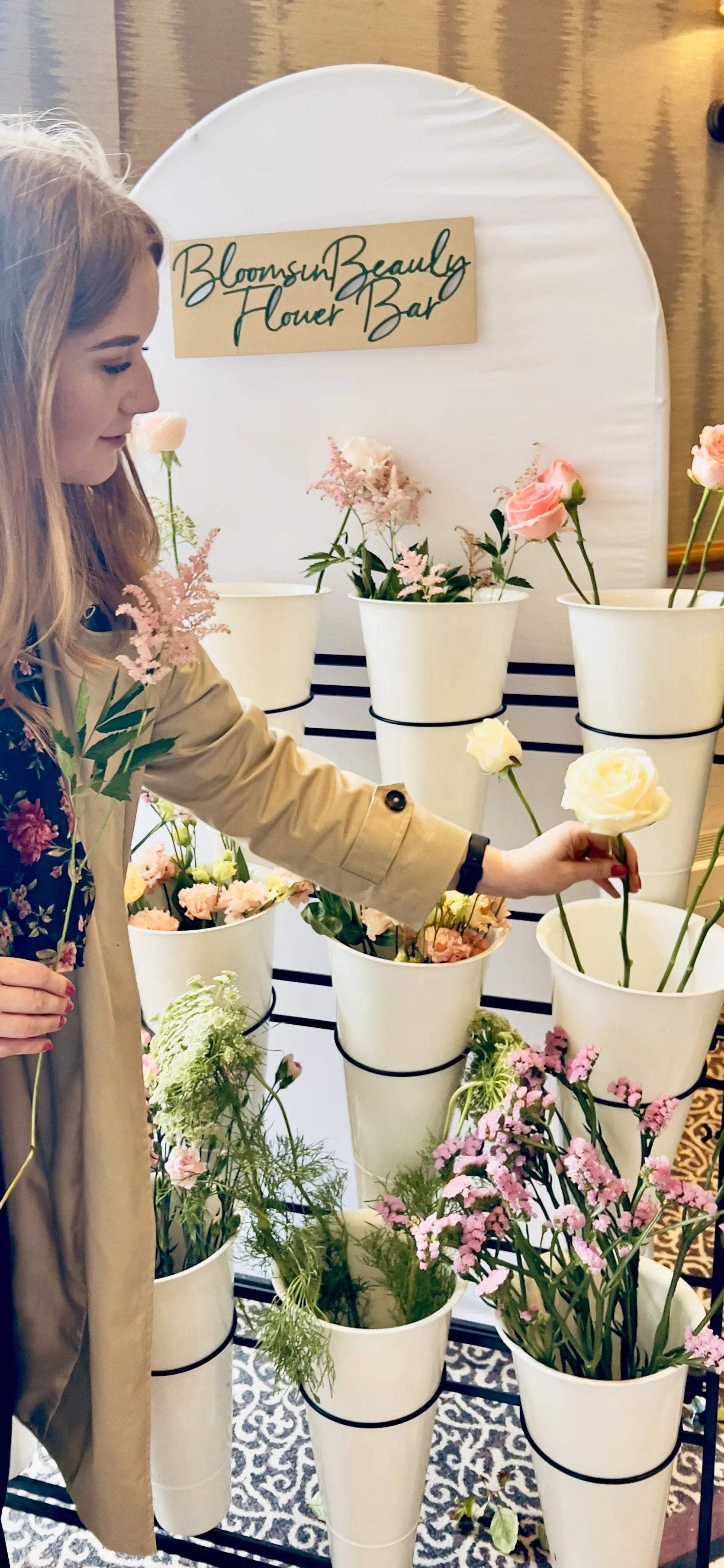Professional set-up and styling of the mobile flower bar at your venue.